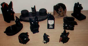 Bei den Hunden überwiegen eindeutig die Schnauzer. Es sind jedoch auch Schäferhunde, Dackel u.s.w. zu finden. Bei den anderen Tiermotiven überwiegen die Eulen, gefolgt von Bären, Füchsen, Pferden, Auerhähnen, Adlern und anderen Vögeln. Ich besitze zwar auch einen Affen und einen Elefanten, jedoch sind exotische Motive eher die Ausnahme.