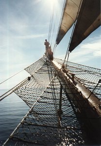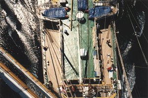 Blick von der 1. Saling auf das Oberdeck |